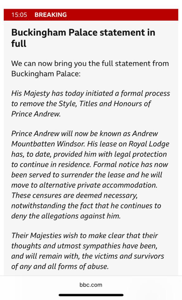 12. Bottom line? Andrew is not a news distraction. He and Epstein are emblematic of a sociopathy, born of emotional distress, that they used to break vulnerable people and wide-open societies. They are not to be pitied. And my take is that Charles has acted the way that he has because he feels the same way.